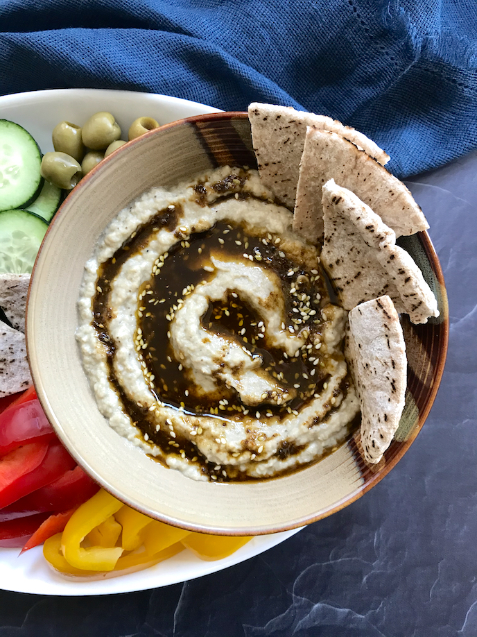 - Serve with pita, veggies, or other items to scoop up your baba ghanoush.