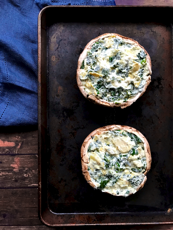 Goat Cheese Spinach and Artichoke Stuffed Portobello Mushrooms