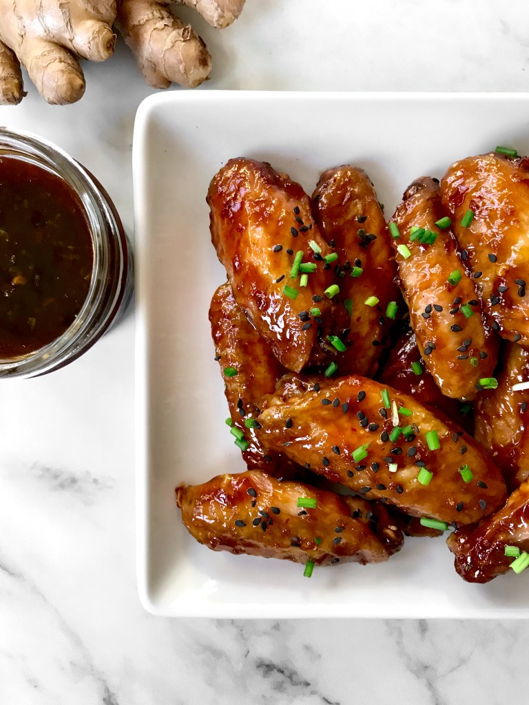 The bold and beautiful Teriyaki sauce is made with coconut aminos, fresh ginger, garlic, toasted sesame oil, rice wine vinegar, sugar and my two secret ingredients: a bit of Chinese five spice and fish sauce. This version of Teriyaki sauce is less sweet and more bold than your average version. Bursting with umami and salty-sweetness, it is the perfect compliment to crispy chicken wings.