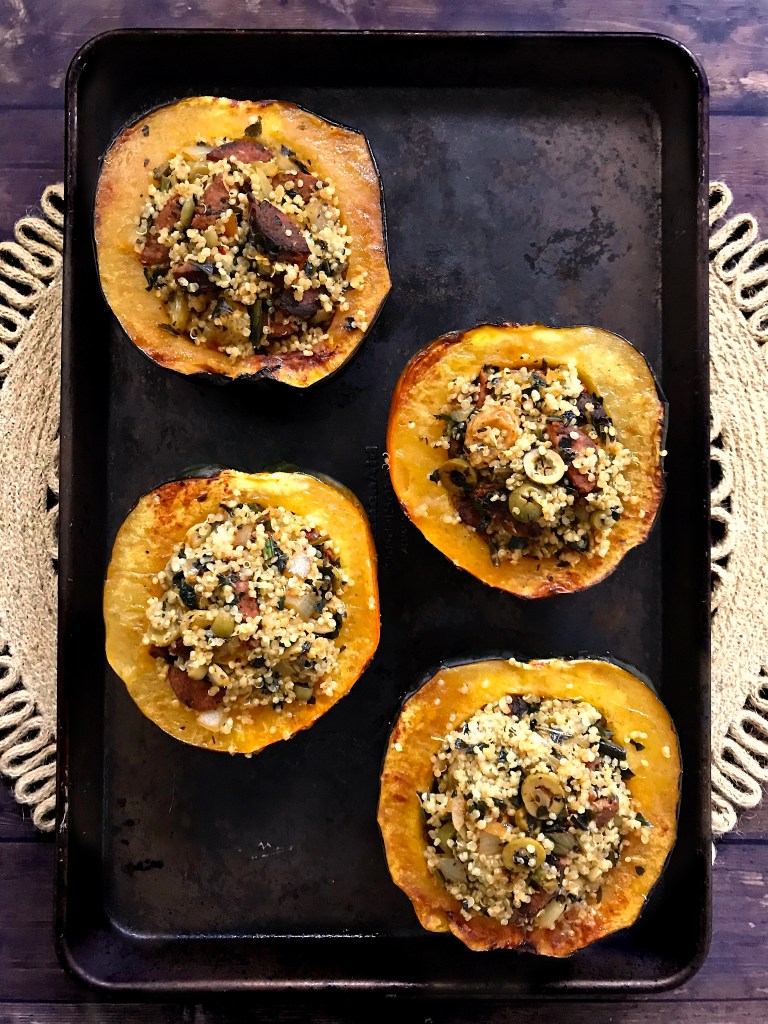 Cheesy Quinoa and Chorizo Stuffed Squash