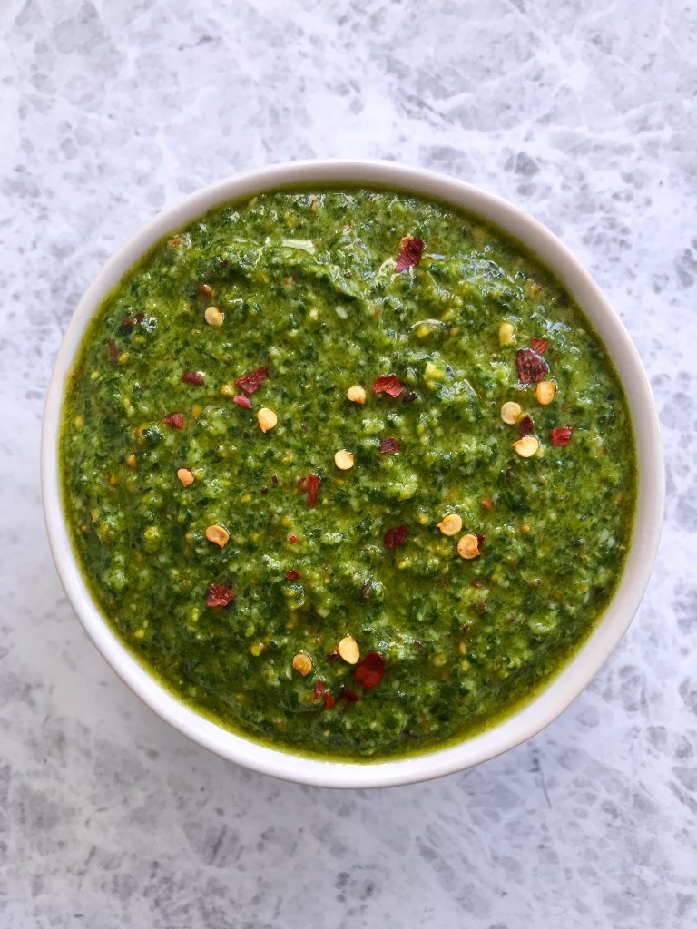 I want to add that this pesto is super bomb with lemon zest added to taste. If you like it zippy, go with a full tsp., or about the zest of one lemon. This will not add acid (the lemon juice takes care of that) but instead lends that pure-lemony goodness with fruity, floral, and bright notes. Depending on what you are using it with – I highly suggest this variation on the recipe below.
